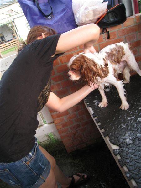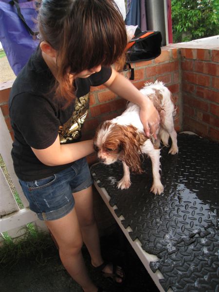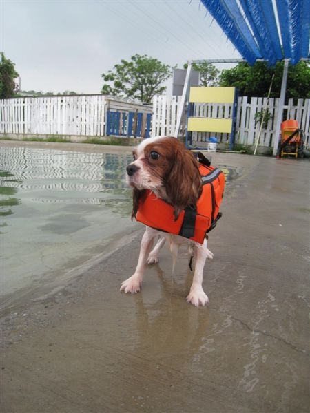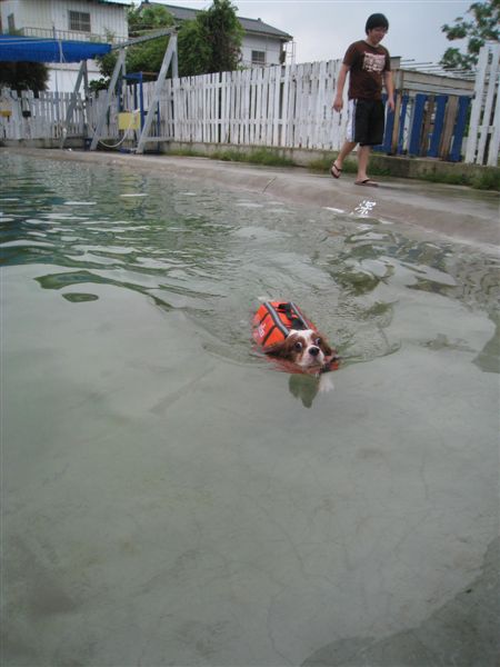 由於當天天氣陰陰的,我們到達時離關園的時間又只剩下2小時,所以其他狗狗都已經在洗澡了,只剩下Prince和一隻很勇猛的拉拉分據泳池兩端(拉拉游到關園呢!好厲害