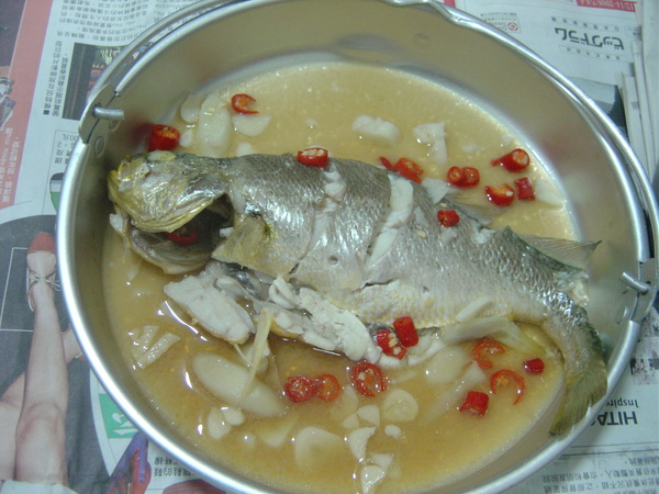 ),但是魚很新鮮,吃起來很甜。這道「亂搞檸檬魚」的醬汁很香,夠酸夠辣,可惜盤子太大,魚的上半部沒有浸泡到醬汁,造成上半部是清蒸黃魚、下半部才是檸檬魚