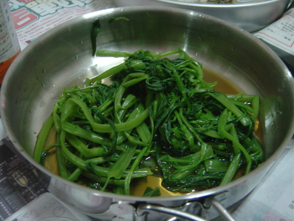 最簡單的一道菜,但是淋上鰹魚醬油後美味滿點!啾吉後來還意猶未盡的把原本要留到第二天再吃空心菜全部燙完。